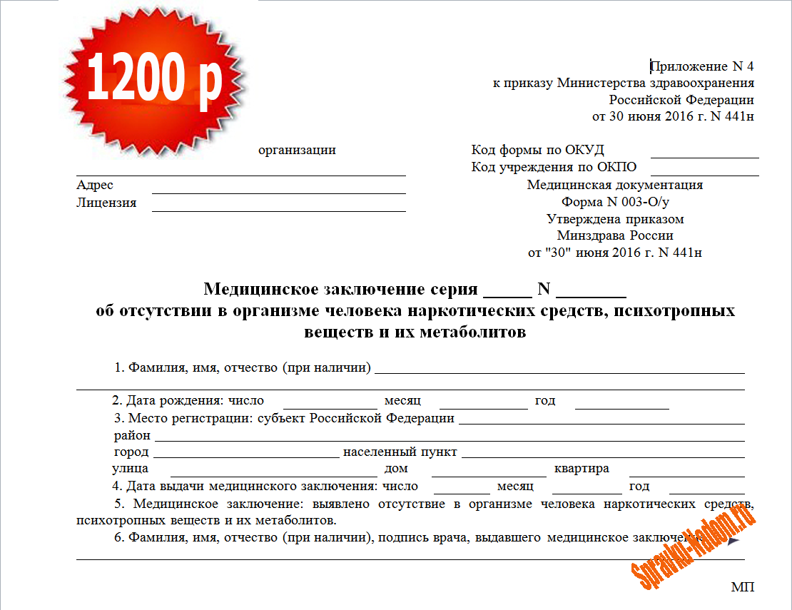 Еще одной сложностью при получении формы 003 О/у является очередное новшество, согласно которому проходить медицинское освидетельствование разрешается только в диспансерах по месту жительства. Данная мера помогает получить более достоверную информацию и при этом не потребуется посещать 2 диспансера. Так как, если придется проходить проверку по другому адресу, то необходимо было бы представить справки о том, что вы не состояли там на учетенарколога.